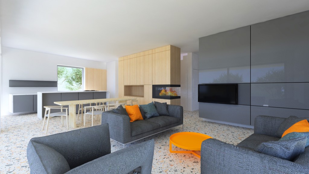 We tried different concept, but given the size of the plot we agreed to make a compact house. With the placement of windows that let enough greenery inside. Perimeter olive trees must be preserved. Parking plot or a garage space must be on the north side. Entrance approx. in the middle to get a nice layout. And placing living area facing south and opening it from northeast to southwest.